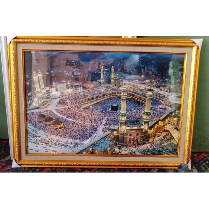 [Star] hiasan dinding bingkai foto kaca ka'bah ukuran 42x58 | pajangan islami | hiasan dinding ruang tamu 3d