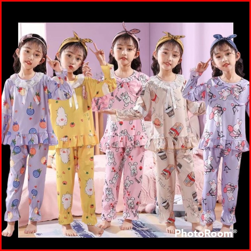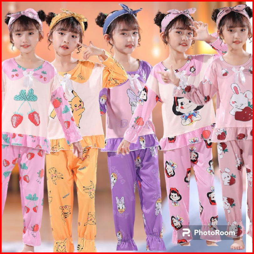 Piyama Setelan Baju Tidur Anak Perempuan Cewek Karakter Import Lengan Pendek Celana Pendek Motif Mickey Minnie Mouse Win