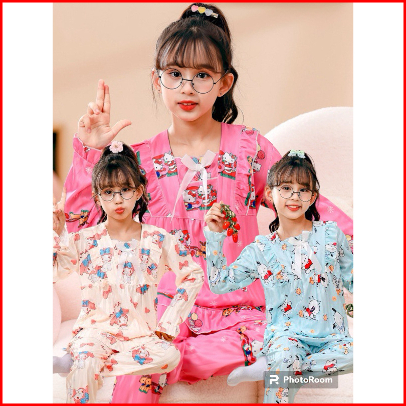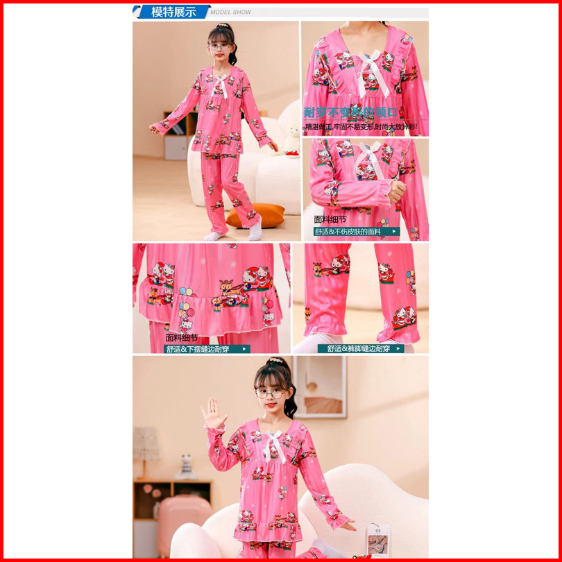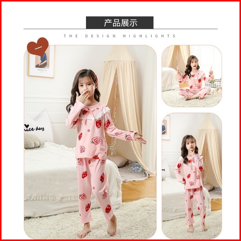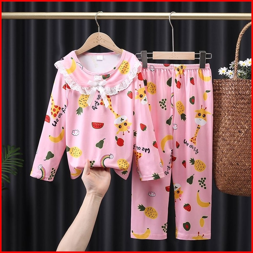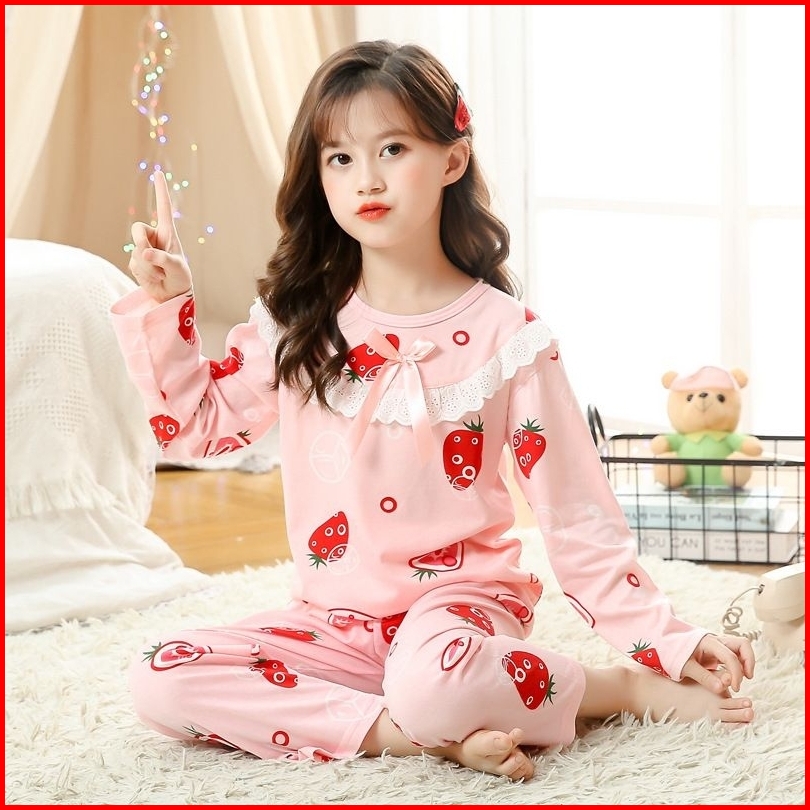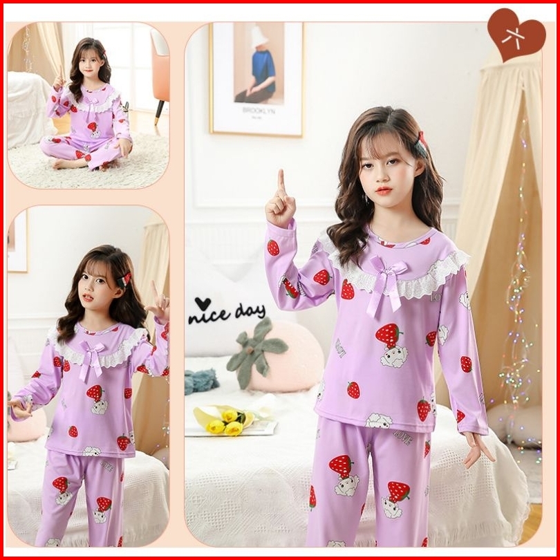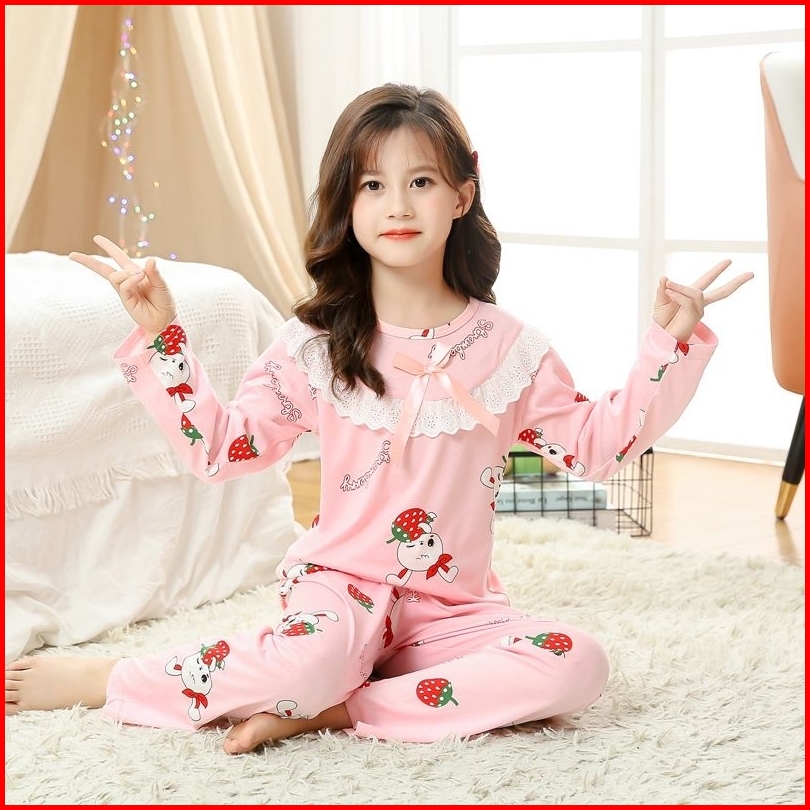Setelan Piyama Baju Tidur Anak Perempuan Import Motif Karakter Kelinci Jerapah Stawberry