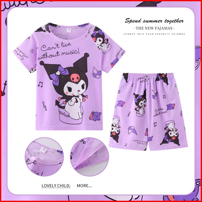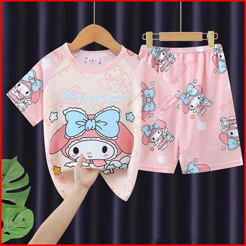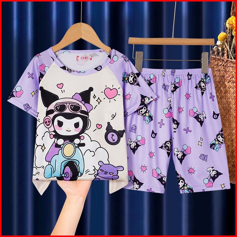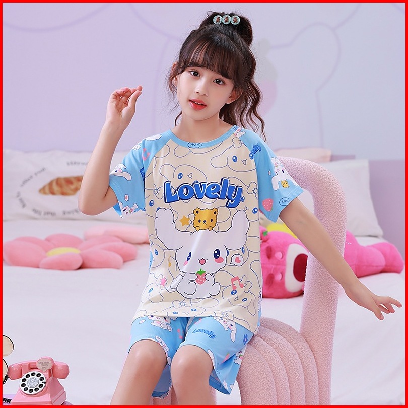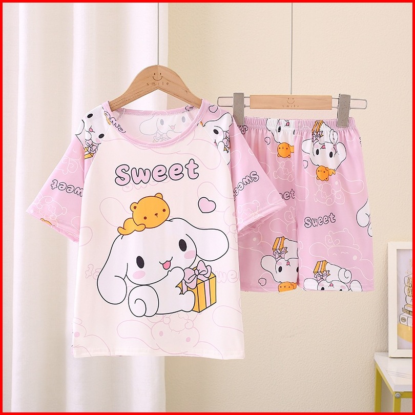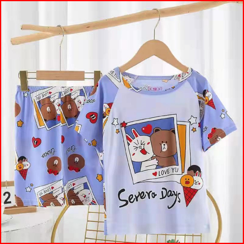 Setelan Baju Tidur Anak Kaos Harian Piyama Lengan Pendek Celana Pendek Usia 4-12 Tahun