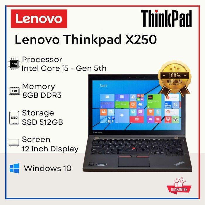 LAPTOP ULTRABOOK LENOVO THINKPAD X250 INTEL CORE I5 GEN 5 RAM 8GB SSD 256GB (FREE MOUSE)