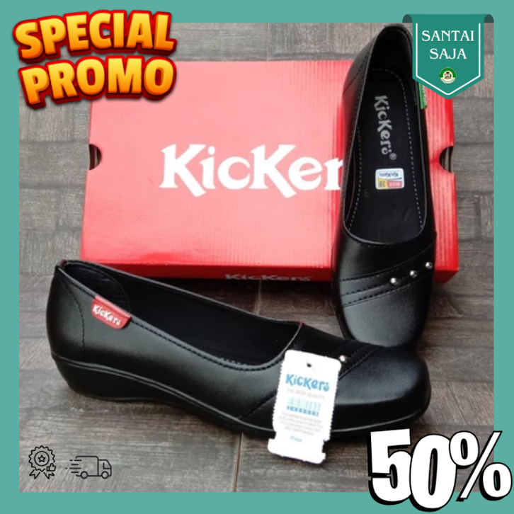 sepatu pantofel wanita SEPATU KERJA CEWEK PANTOFEL FLAT HITAM TREPES ASLI CANTIK PREMIUM QUALITY PLUS BOX T11 terlaris