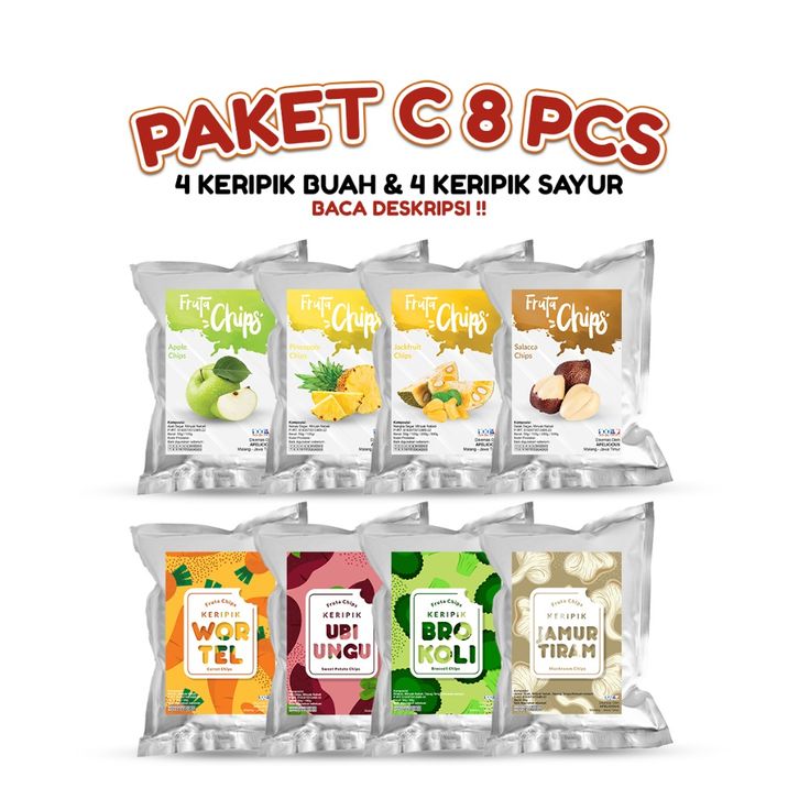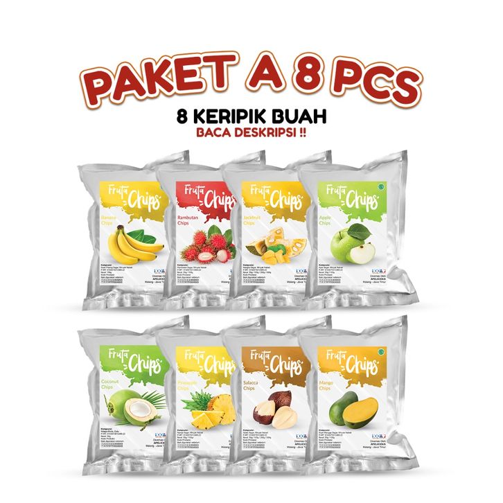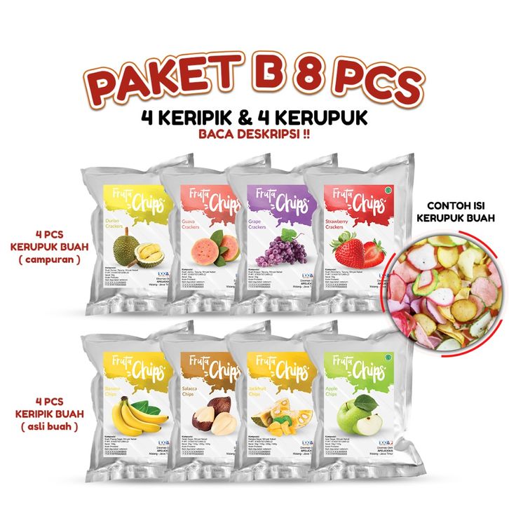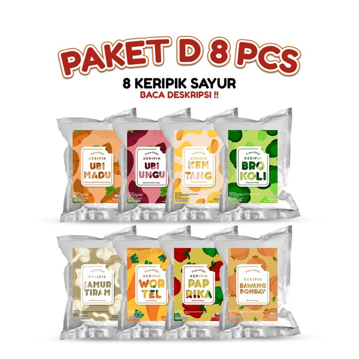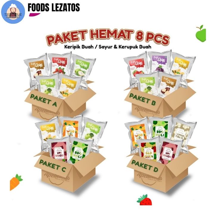 Paket Hemat 8pcs Keripik (Buah, Sayur, Krupuk Buah) Cemilan Best Seller Termurah Foods Lezatos