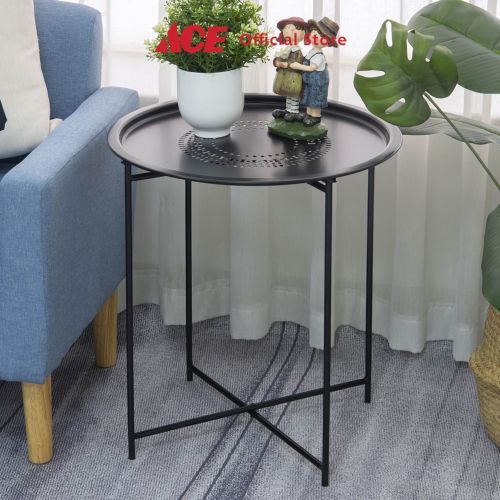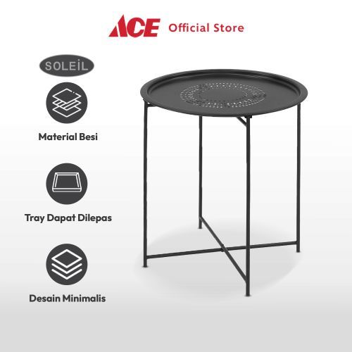 SOLEIL MEJA TERAS DENGAN TRAY-HITAM MEJA LUAR RUANGAN GARDEN TABLE BALCONY DESK TAMAN OUTDOOR FURNITURE TERLARIS