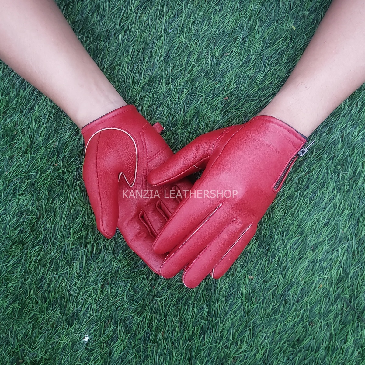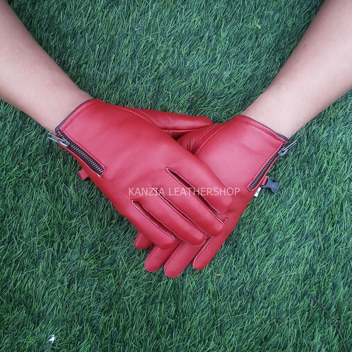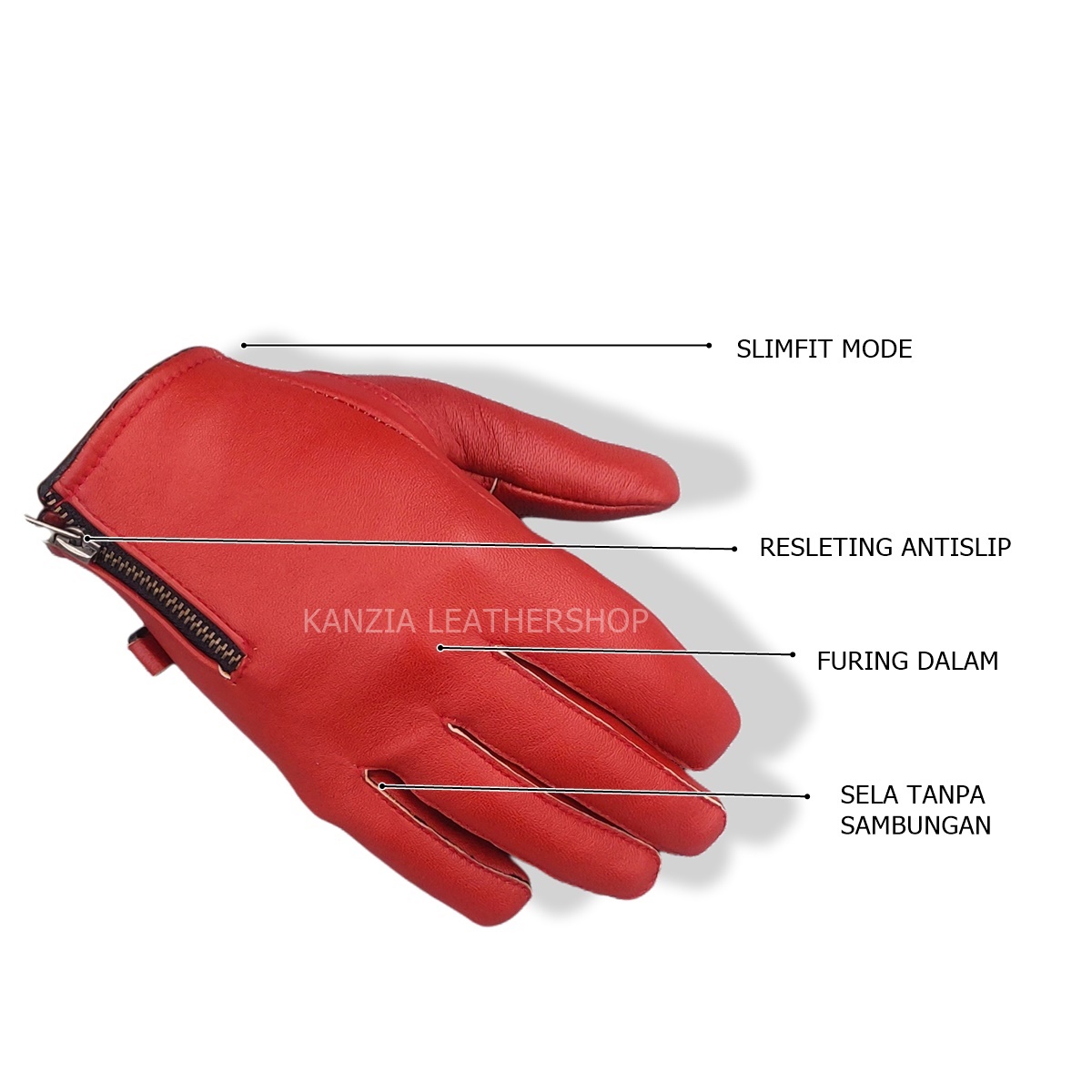 Sarung Tangan Motor Cowok Keren Kulit Domba Kanzia Leathershop Merah Merona