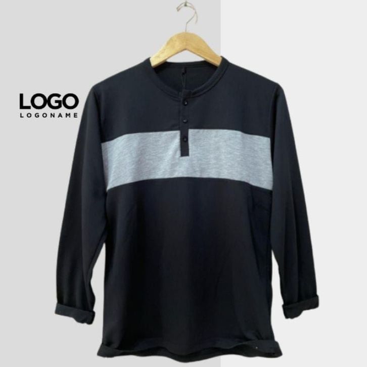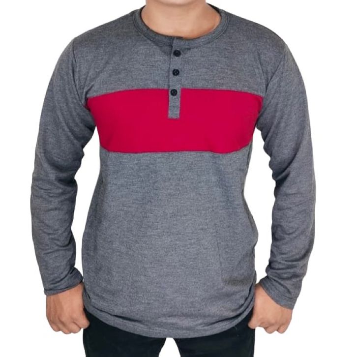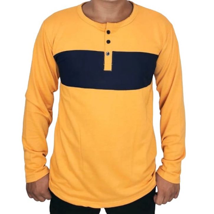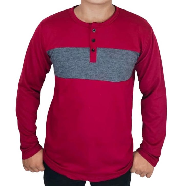 Kaos Kancing Cowok Pacah Pola Lengan Panjang Warna Solid Atasan Baju Cowok Henley Distro Cotton Combed Ukuran M L XL