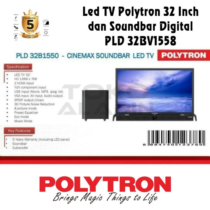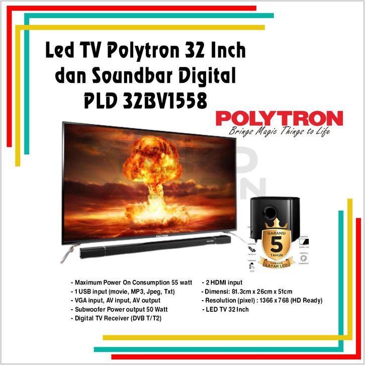 Led TV Polytron 32 Inch dan Soundbar Digital PLD 32BV1558