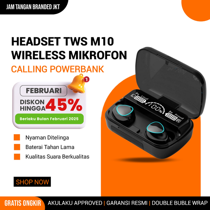 Headset Tws M10 Wireless Mikrofon Stereo Calling Powerbank Aksesoris Elektronik Handphone HP Kekinian Suara Jernih Halus