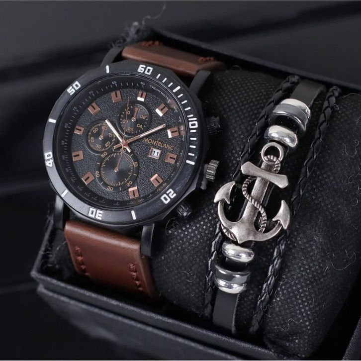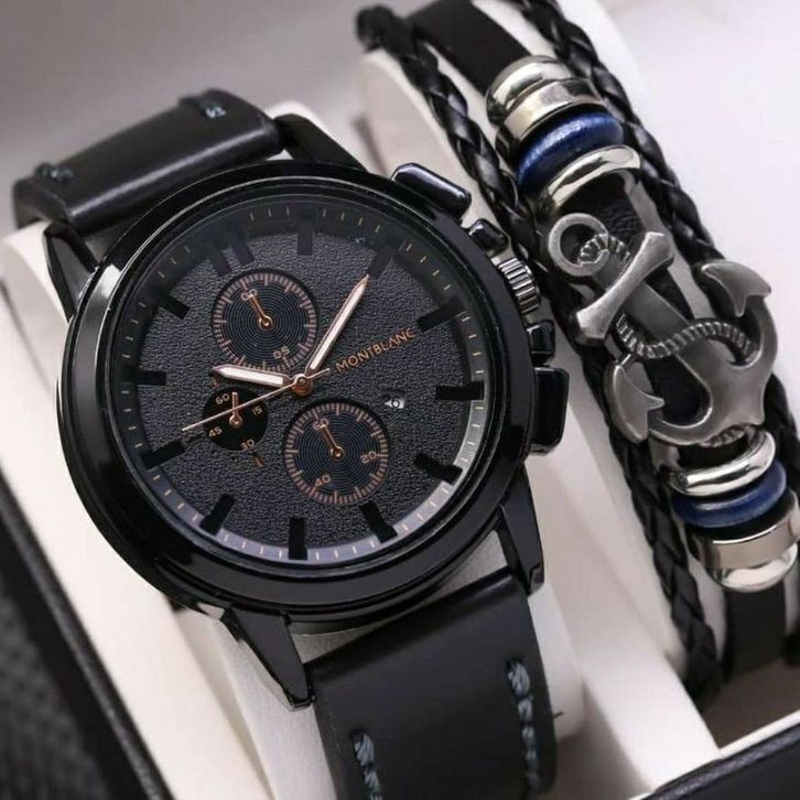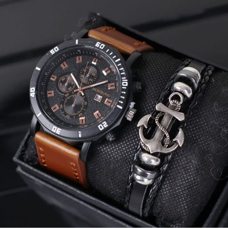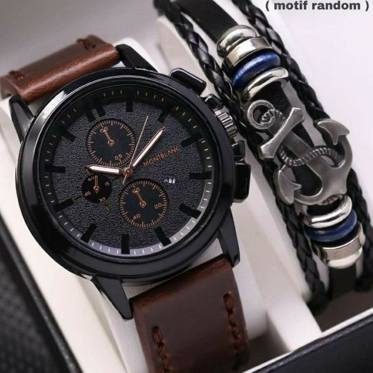 Jam Tangan Coowok Kulit Tanggal Aktif Free Gelang Diameter 45mm Fashion Aksesoris Kekinian Cowok Laki Laki Kekinian