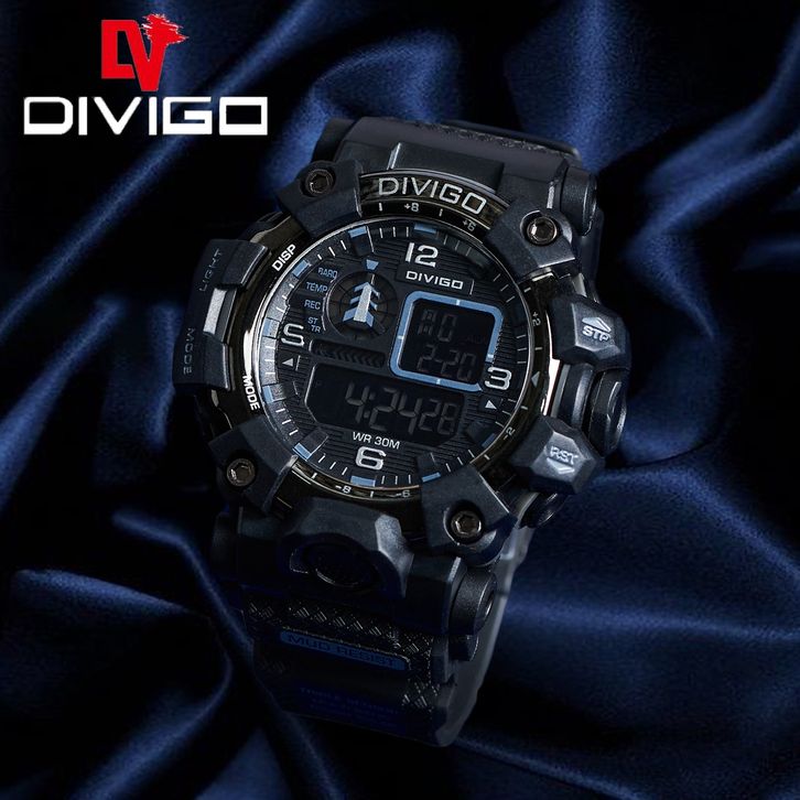 Jam Tangan Cowok Digital Divigo Arloji Aksesoris Cowok Laki Laki Strap Karet Anti Air Water Resist Kekinian