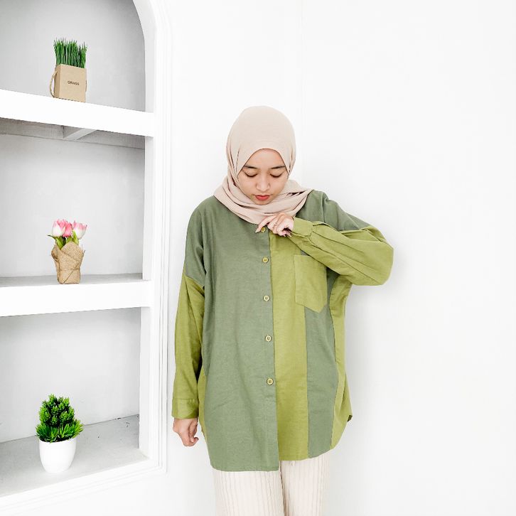 Baju Wanita Ukuran Jumbo Fashion Pakaian Kemeja Oversize Kekinian Outfit Kuliah Hangout Santai Bahan Linen Halus Nyaman