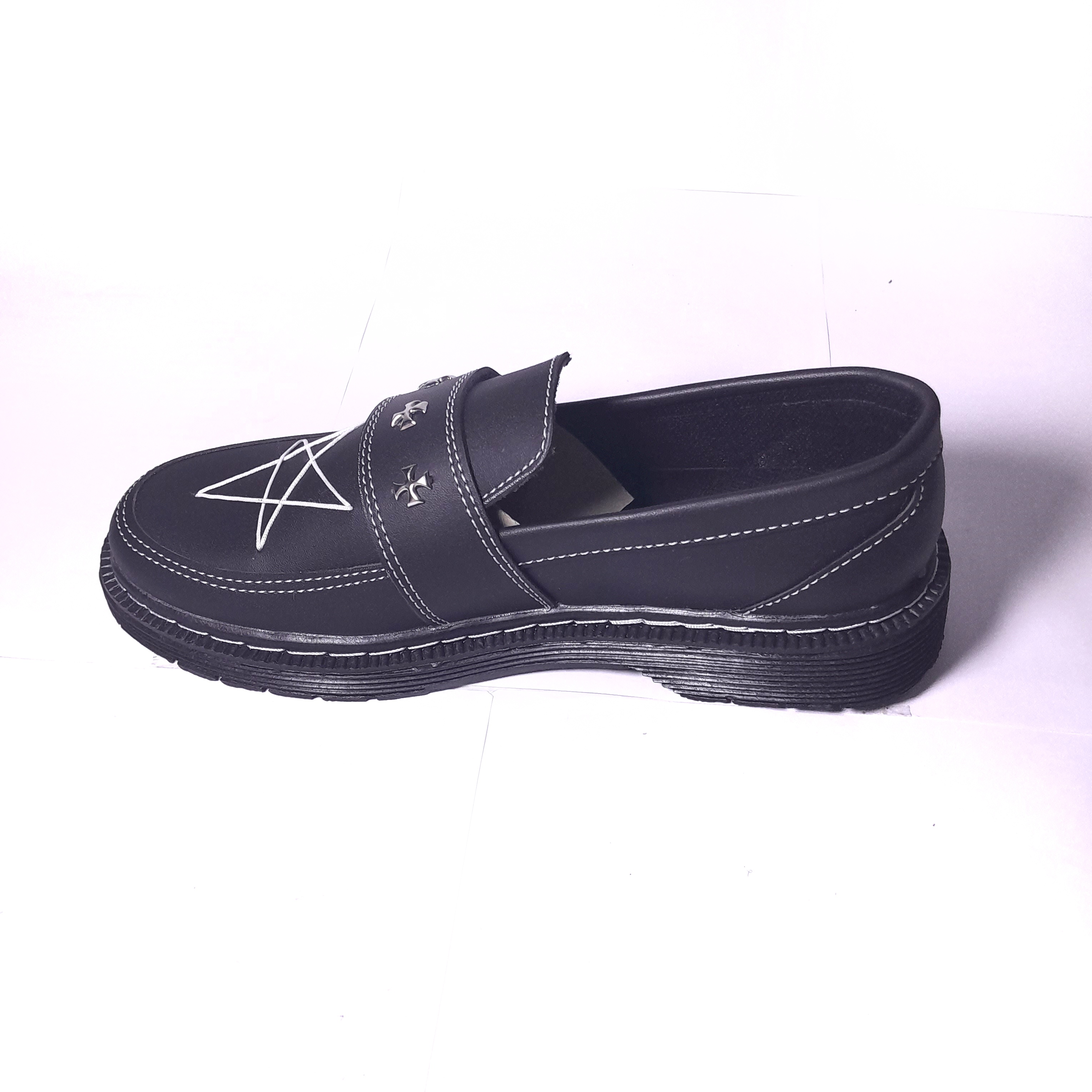sepatu slip on docmart bintang velcro casual emblem salib kasual loafers warna hitam