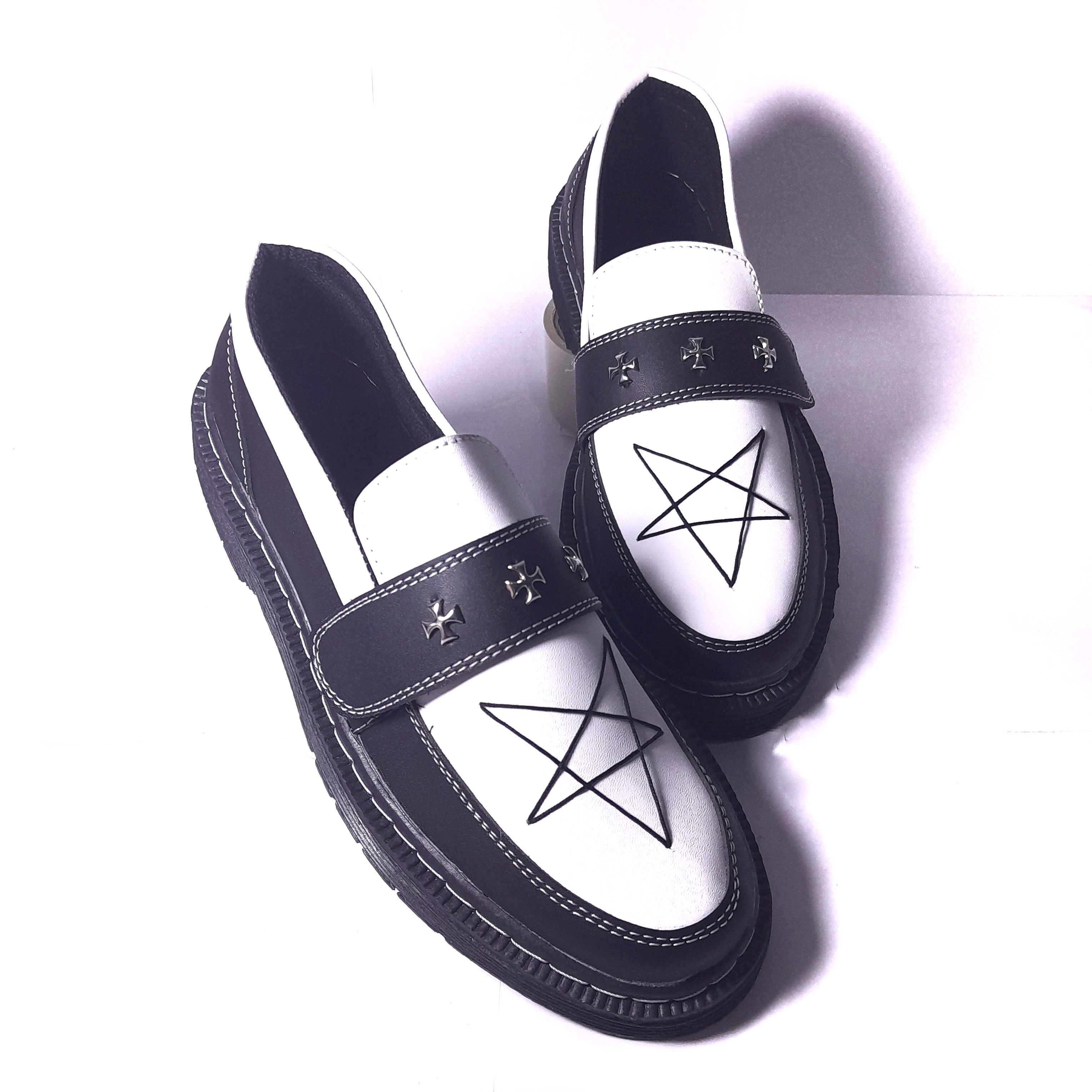 sepatu slip on docmart bintang casual velcro emblem salib kasual loafers warna putih hitam kombinasi warna