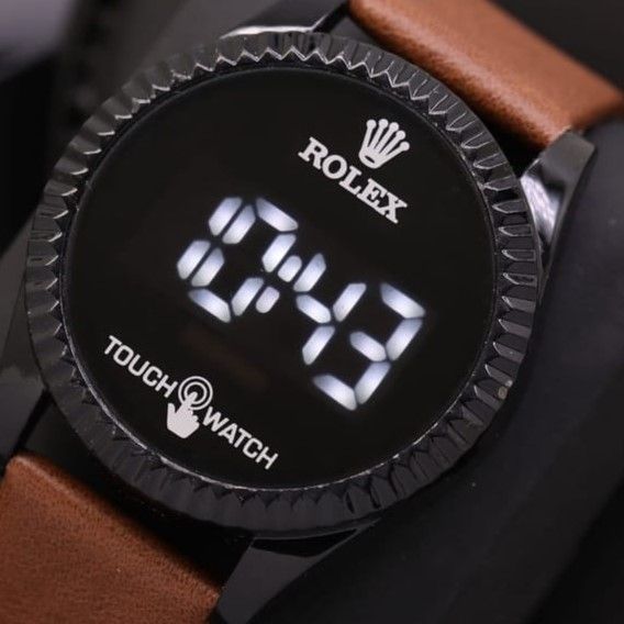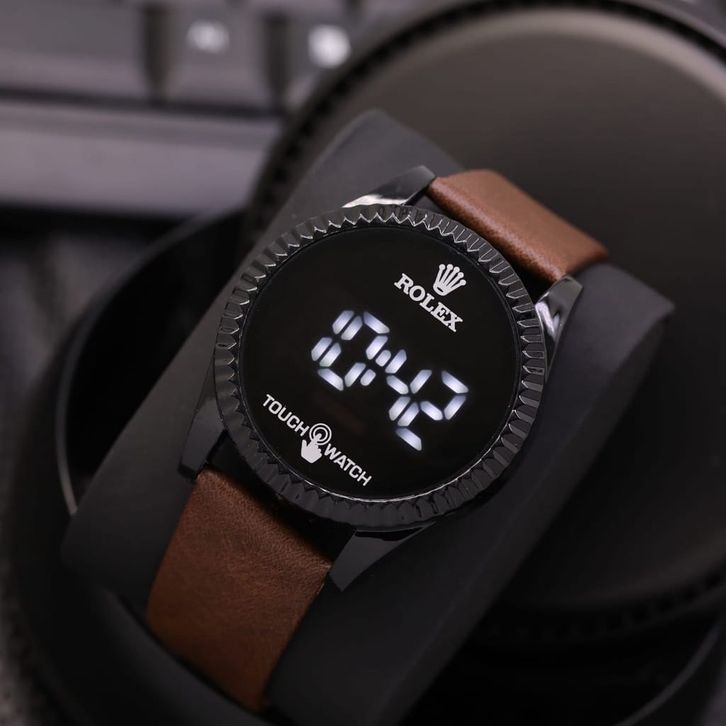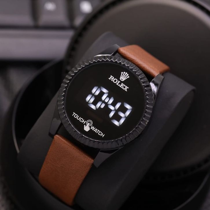 Jam Tangan Pria Cewek Digital Led Touch Screen Arloji Cowok Cewek Tali Kulit Free Box Ori Baterai High Quality