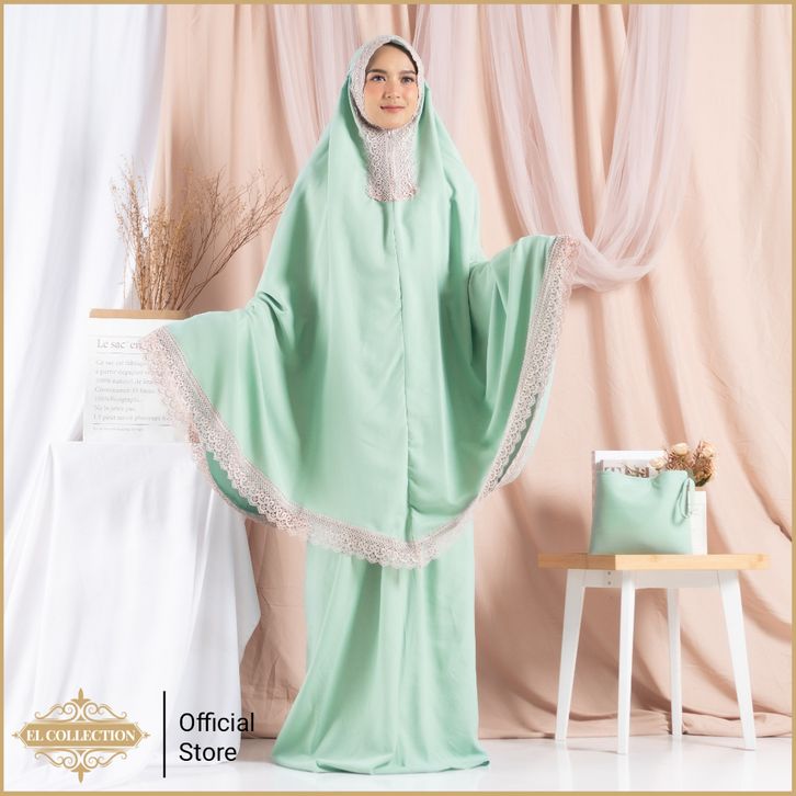 EL - Mukena Dewasa Zamora Katun Polos Renda Mewah 2In1 Jumbo