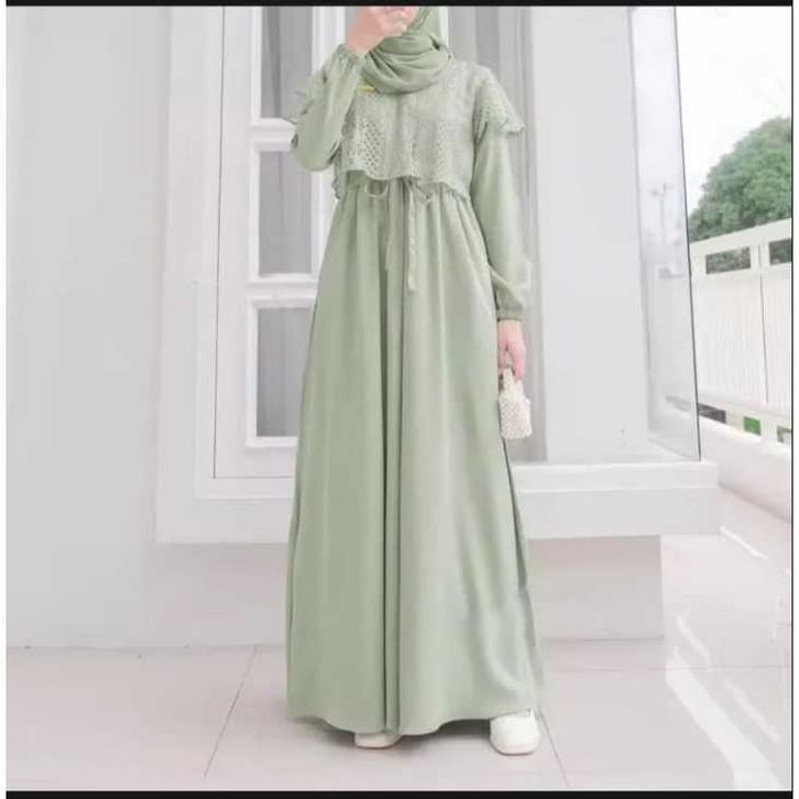 hasna dres terbaru bahan crinkle import mix brokat malika kekinian gamis wanita terbaru 2025