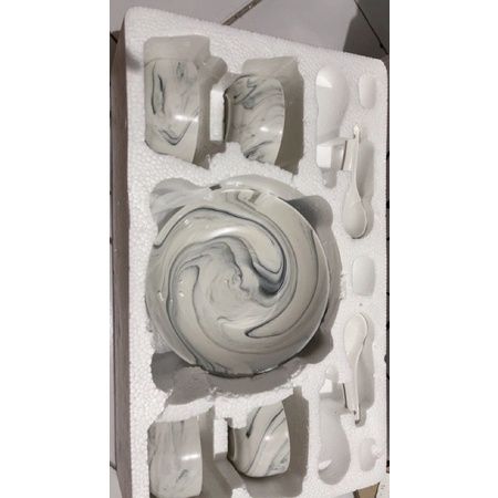 SET ALAT MAKAN MANGKOK PIRING MARBLE TEBAL HAMPERS KADO LEBARAN