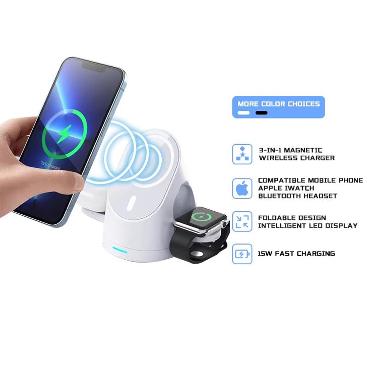 Wireless Charger Stand Charging 15W 3in1 Magnetic