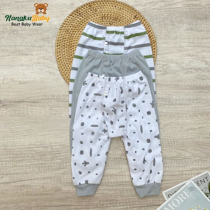 Nanaku Baby - Paket Newborn Isi 3 Setel Lengan Pendek Celana Diapers Panjang Ukuran S M L XL Usia 0-18 Bulan Seri Grey