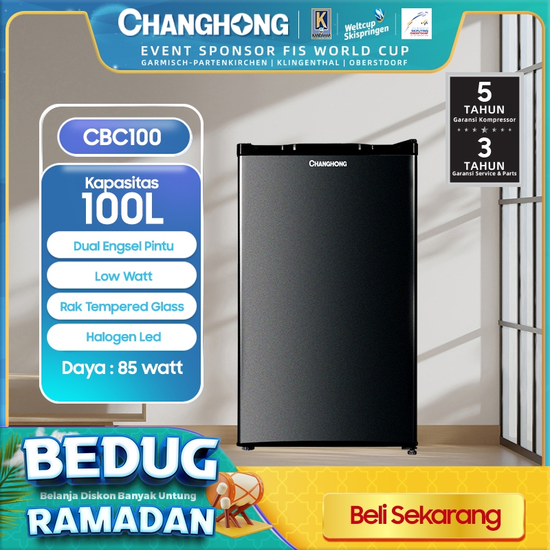 CHANGHONG KULKAS 1 PINTU (REFRIGERATOR) LEMARI ES KAPASITAS 100 LITER – BLACK CBC 100 (SEMI AUTO-DEFROST )