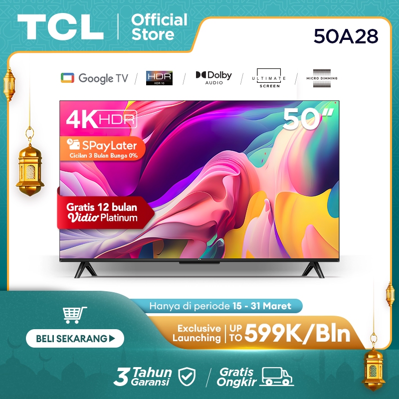 TCL 50A28 - 50 INCH GOOGLE TV - 4K UHD - HDR 10 + MICRO DIMMING - DOLBY AUDIO - GOOGLE ASSIstant