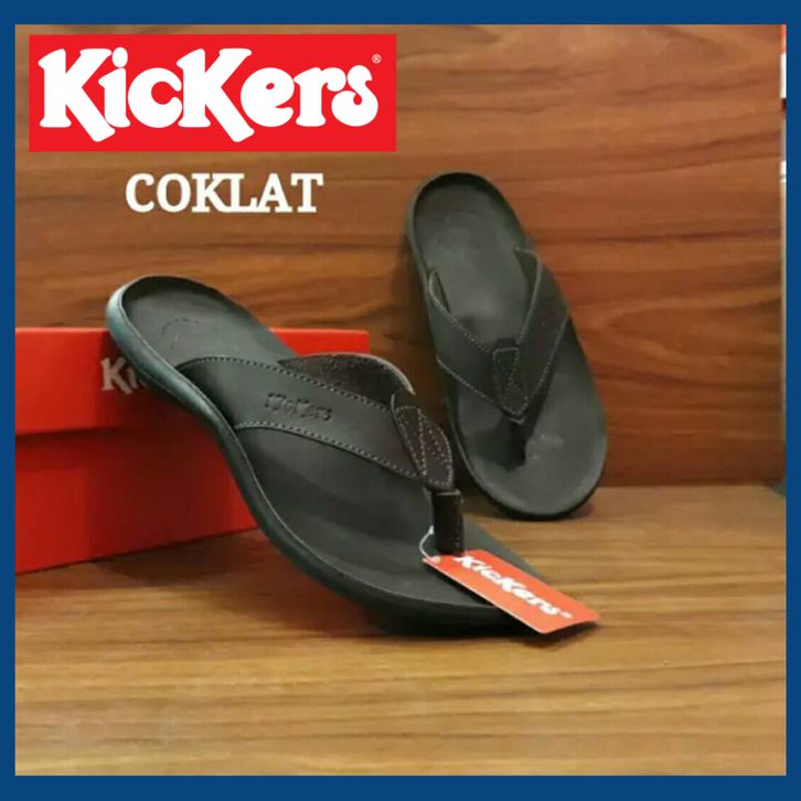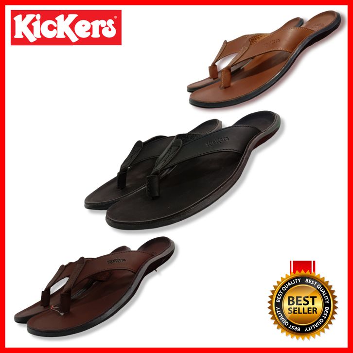 SANDAL PRIA KICKERS KULIT ASLI MODEL JEPIT / SANDAL KASUAL COWOK KEKINIAN PROMO / SENDAL DISTRO LEBARAN ASLI KULIT