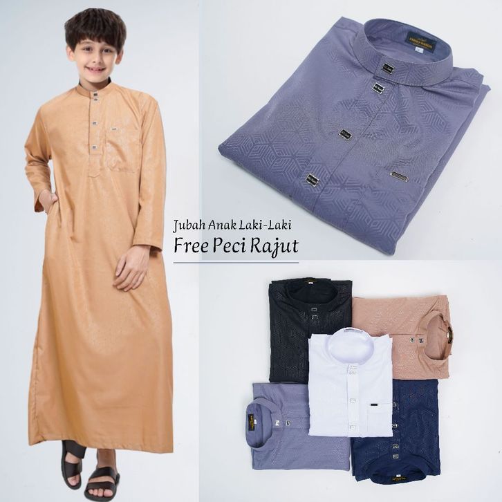 Jubah anak Gamis pria motif embos lengan panjang / gamis anak laki-laki premium baju fashion muslim anak