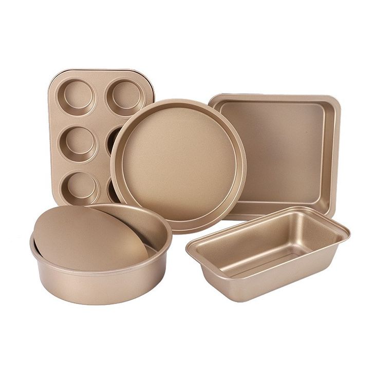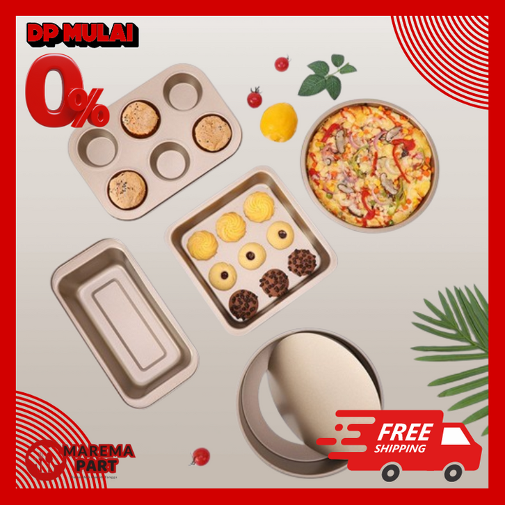 Loyang Set 5pcs Glden Series Non Stick Coating / Brownies / Loaf Pan / Pizza / Muffin