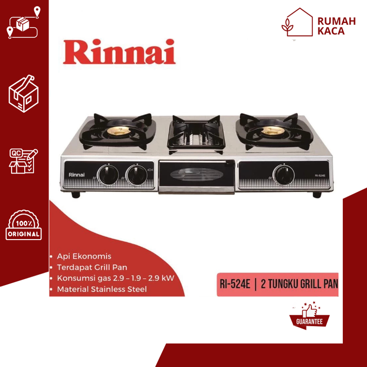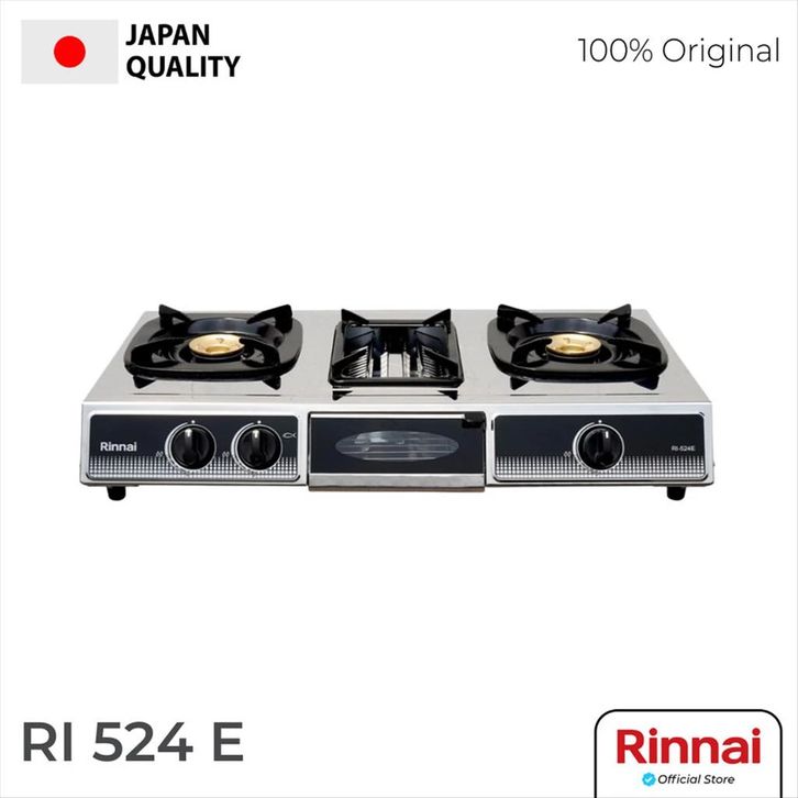 KOMPOR GAS RINNAI RI524E / RI-524 / RI524 GRILL PEMANGGANG (API EKONOMIS / 2 TUNGKU) 100% ORIGINAL