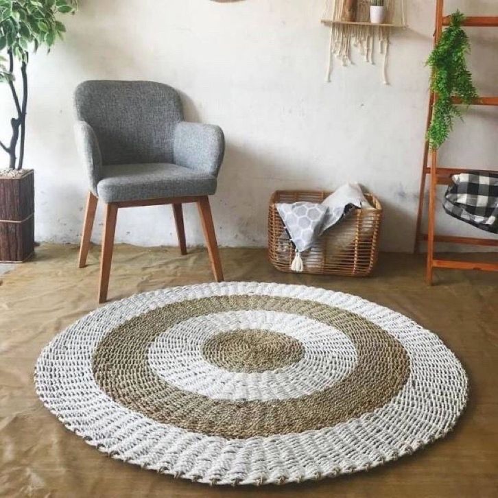 FREE ONGKIR Rug Anyaman Seagrass / Karpet Anyaman / Karpet Bulat / Floor Mat 120 cm