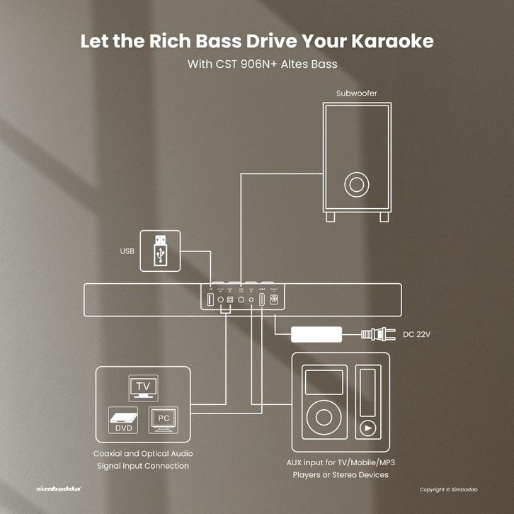 Speaker Bluetooth Simbadda Original CST 906N+ Soundbar TV Wireless Altes Bass Speker Spiker