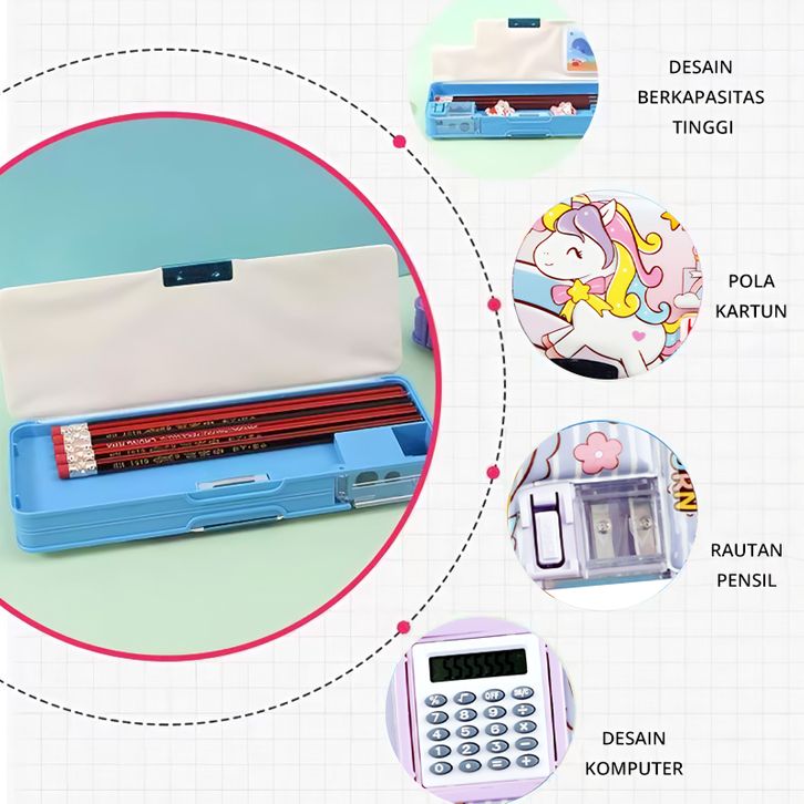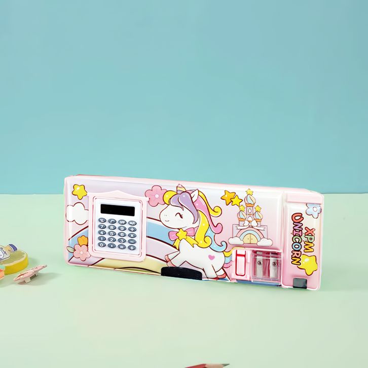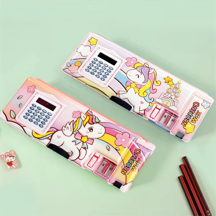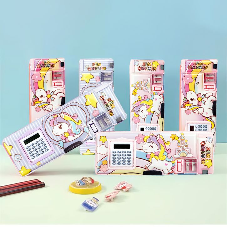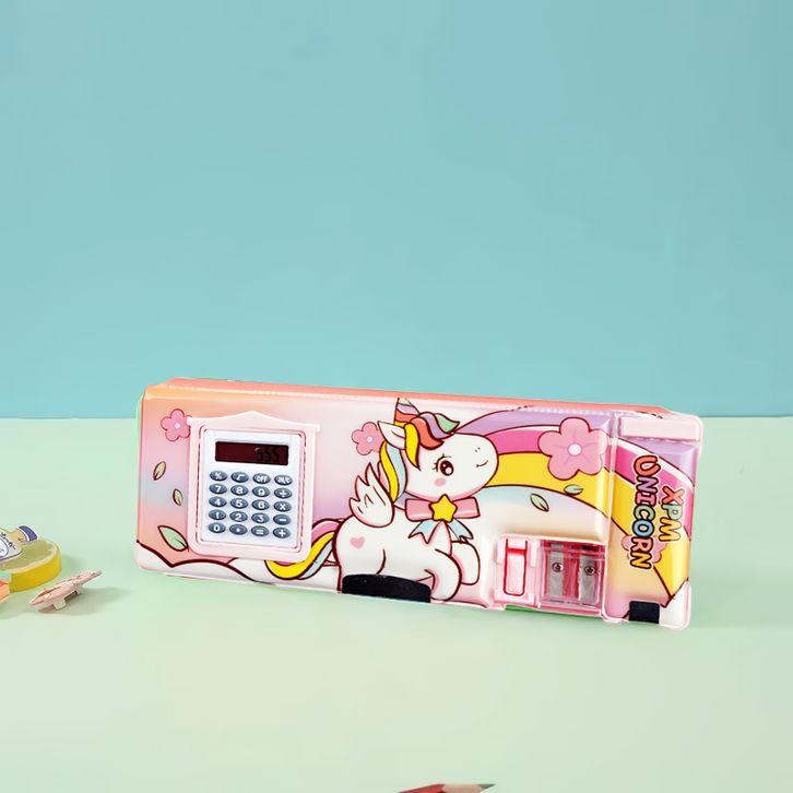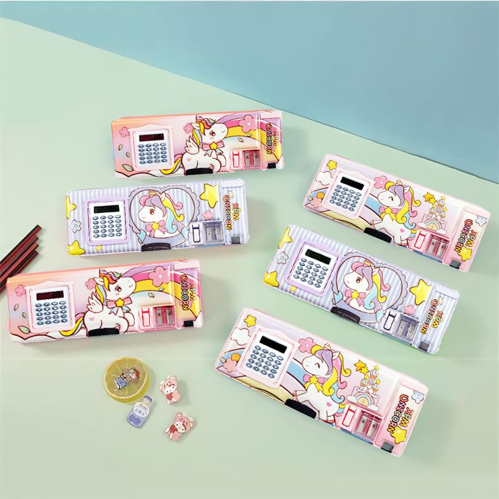 Tempat Pensil Magnet Karakter Anak Lucu Kalkulator Kotak pensil pola unicorn kartun multifungsi Kalkulator ST-018