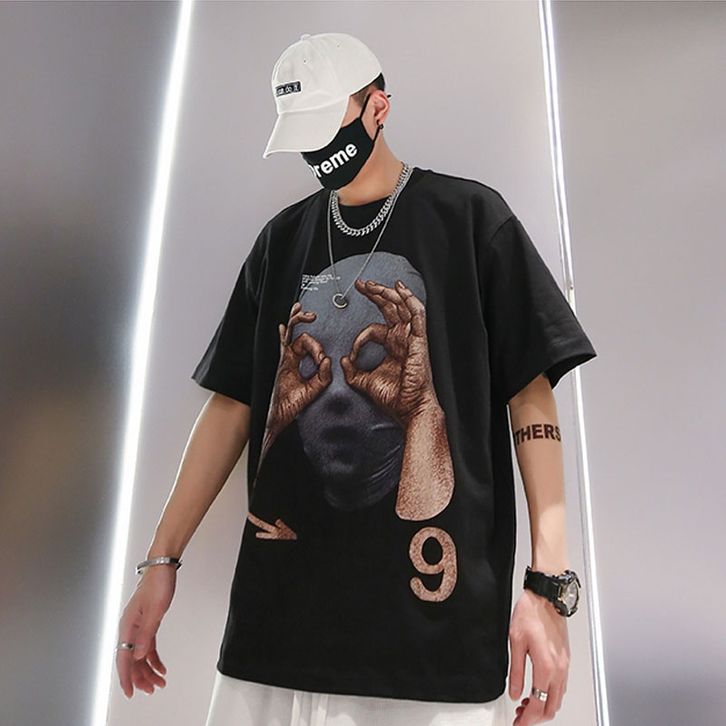 Kaos Oversize Cowok Wanita Atasan Baju TShirt Unisex Cowok Cewek Loose Hip Hop Hitam Putih Bahan Katun Combed Premium