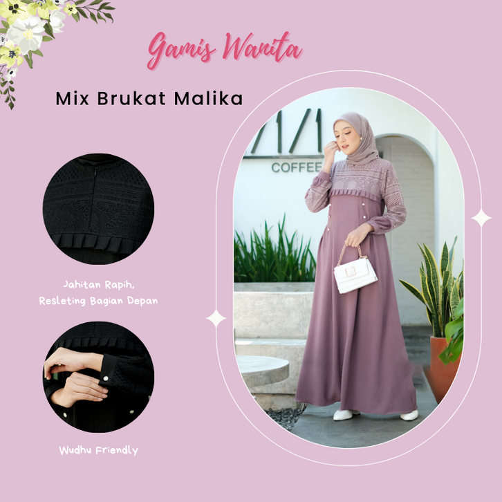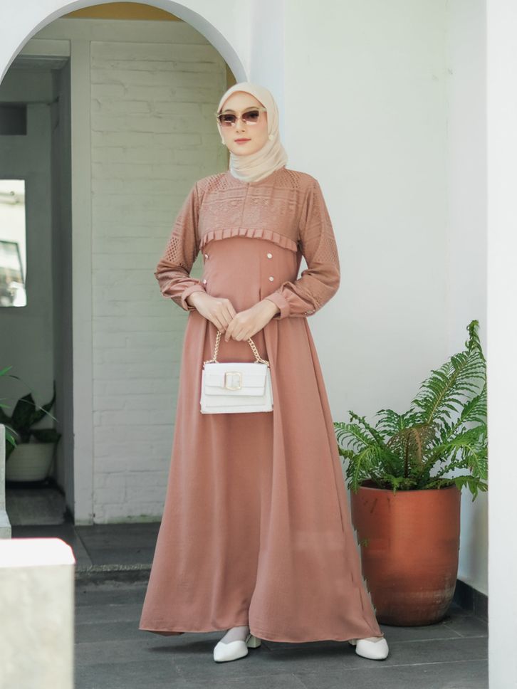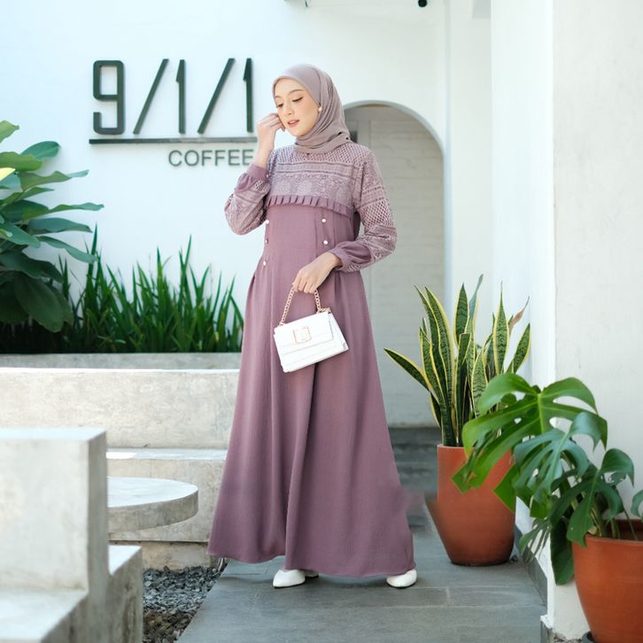 Inara Dress Crincle Airflow Mix Brukat Malika / Gamis Kondangan Wanita