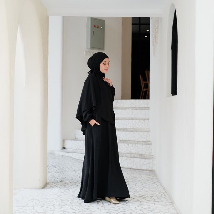 Gamis Wanita Umroh Bergo Polos Airflow Crinkle Fatiya Syari Dress Khimar Tali Best Seller Termurah Busana Muslim Amiirah