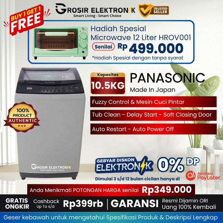 PANASONIC Mesin Cuci 1 Tabung 10.5 KG [ NA-FB1 7KG - 10.5KG ] - mesin cuci panasonic 8kg - STGE - TL1