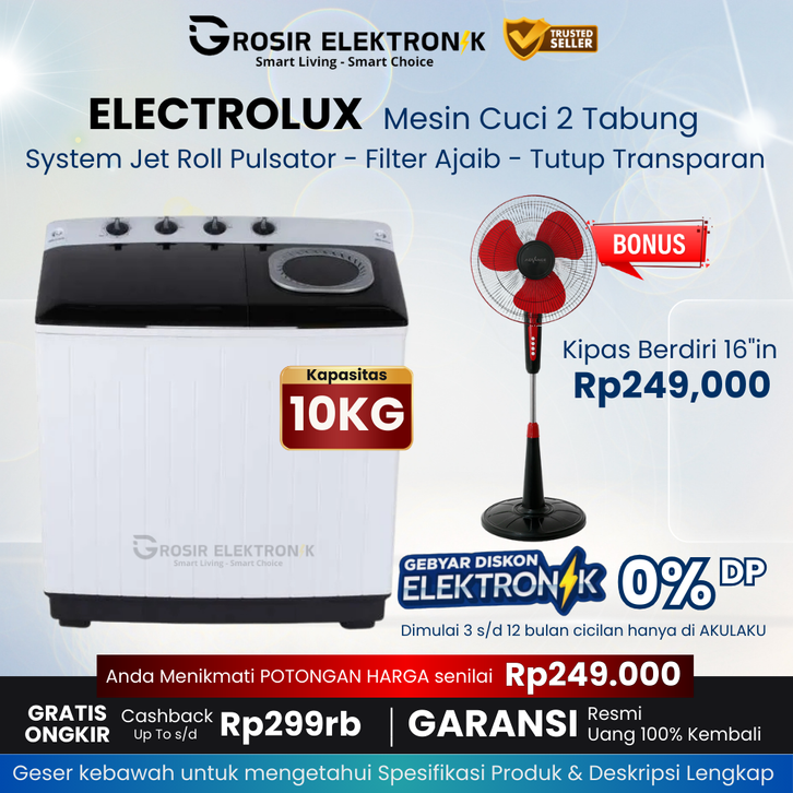 GRATIS ONGKIR - Mesin Cuci 2 Tabung 10KG [ ELECTROLUX 261WA 7KG - 12KG ] - mesin cuci 2 tabung jumbo - STGE - M2T