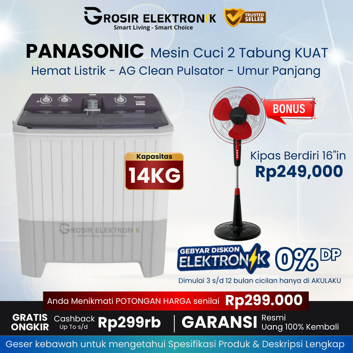 GRATIS ONGKIR - Mesin Cuci 2 Tabung 14 KG Low Watt [ PANASONIC NA-WFCV1V 7.5KG - 14KG ] - mesin cuci jumbo - STGE - M2T