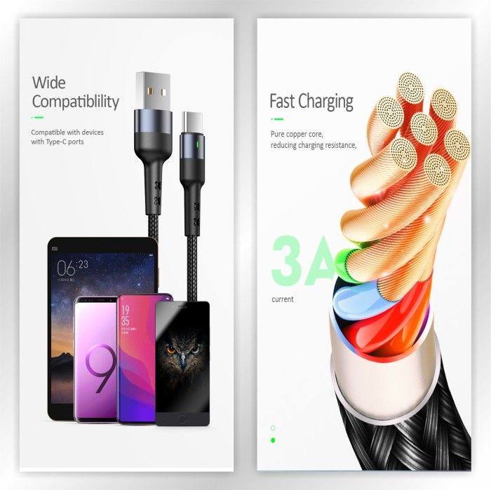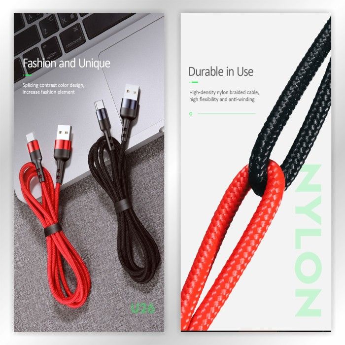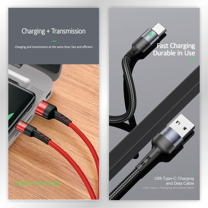 U26 Kabel Data Type C Fast Charging & LED Indikator - Merah