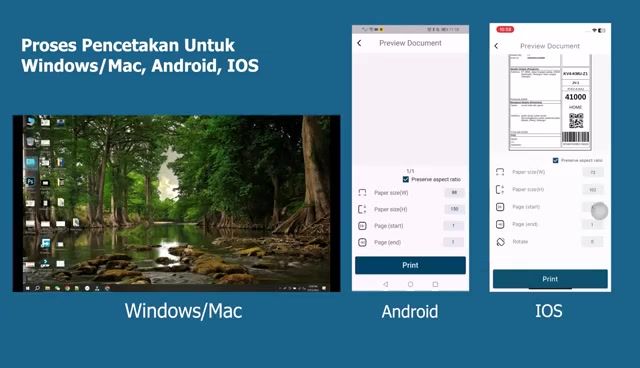 PRINTER THERMAL WAYBILL BARCODE & CETAK RESI PRINTER LABEL STICKER USB+BLUETOOTH 4 & 3 INCI TERLARIS