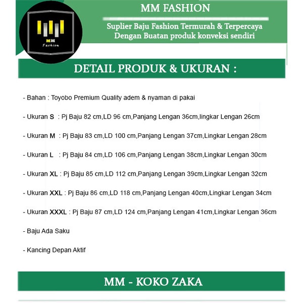 KOKO ZAKA LENGAN 3/4 - MM FASHION (MM) - UKURAN S-3XL - MATT KATUN TOYOBO IMPORT - BAJU KOKO QURTA PRIA