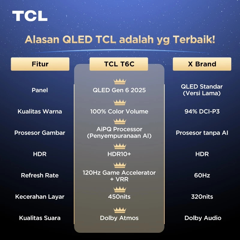 SMART TV 75 INCH TCL NEXT GEN QLED T6C 4K GOOGLE TV DOLBY SMART TV 43 INCH 65 55 50 DIGITAL ANDROID LED MURAH TANPA DP
