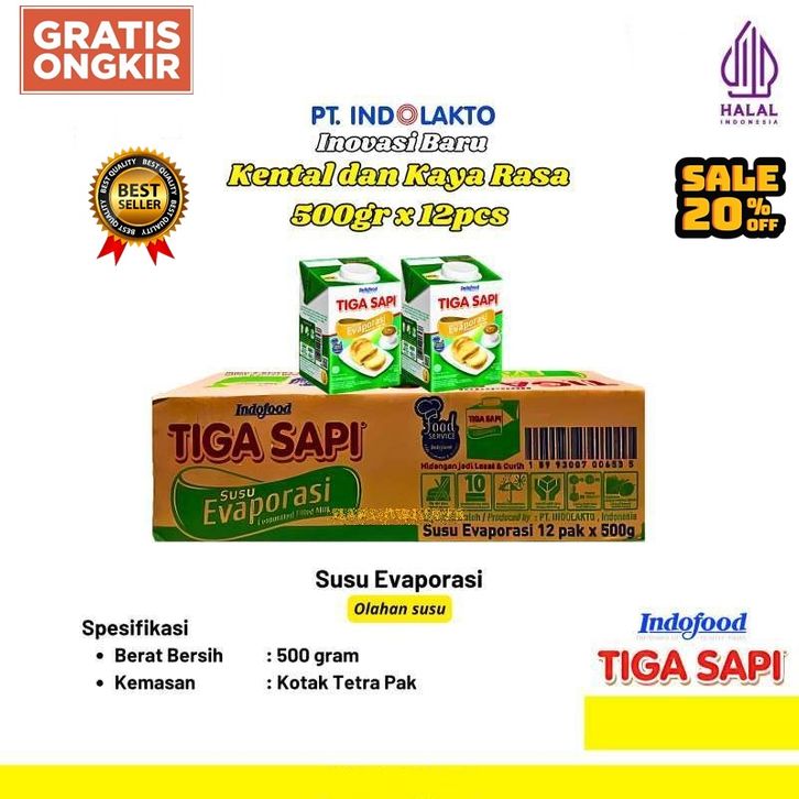 Susu Evaporasi Tiga Sapi 1 Karton isi 12 pak x 500g