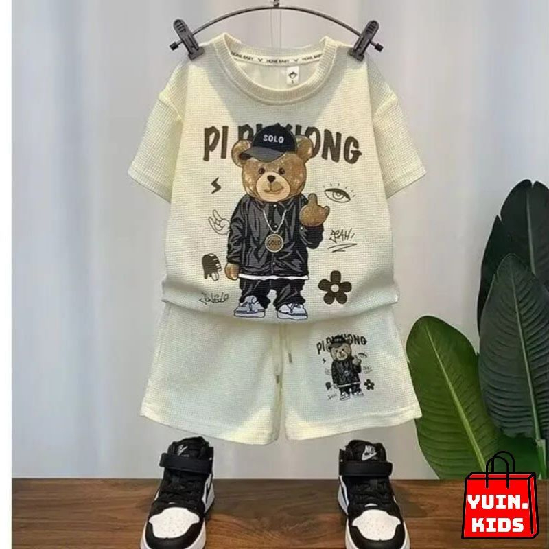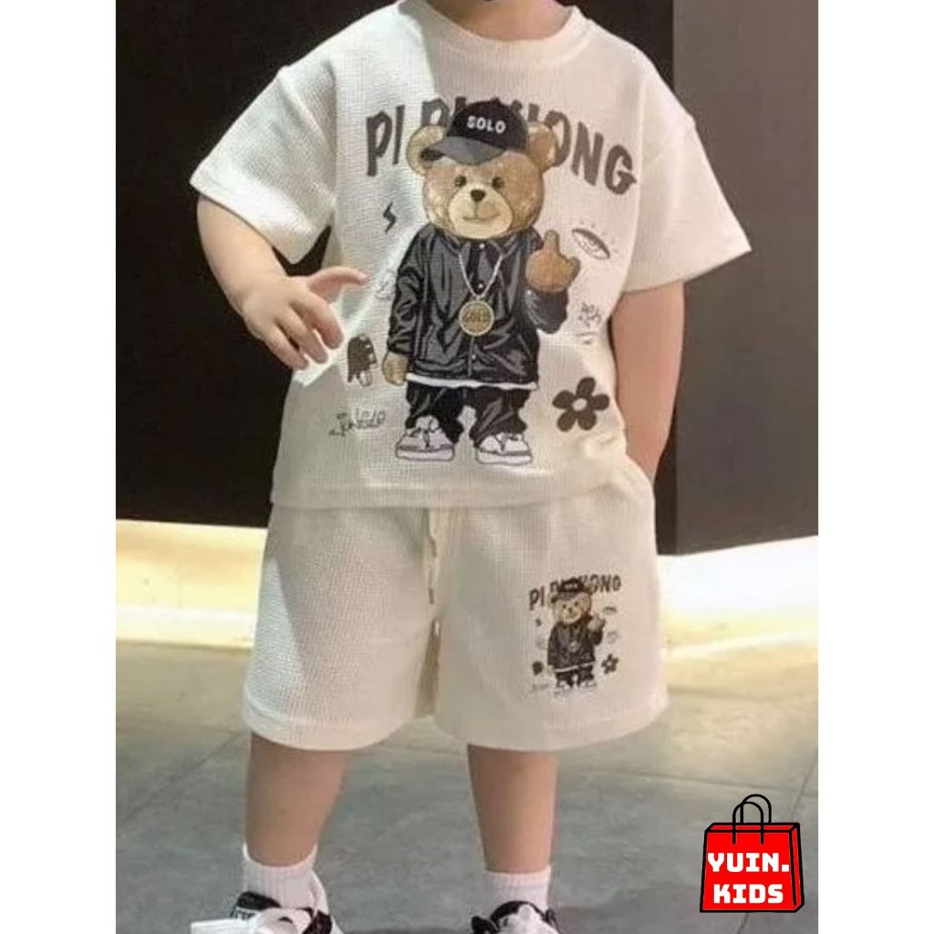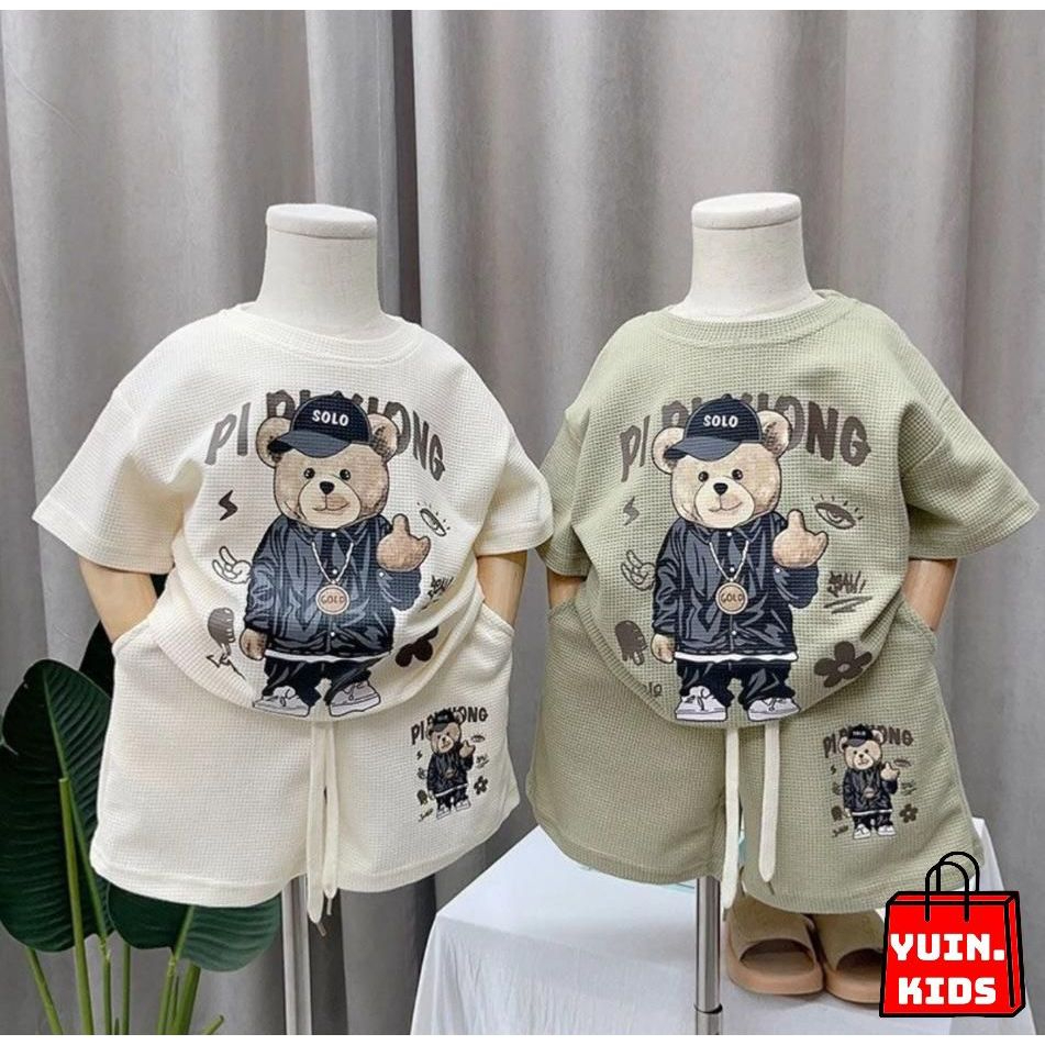 SETELAN ANAK LAKI-LAKI MOTIF BEAR UNTUK USIA 1-6 TAHUN BAHAN KNIT WAFEL SETELAN ANAK LAKI LAKI IMPORT SETELAN ANAK COWOK