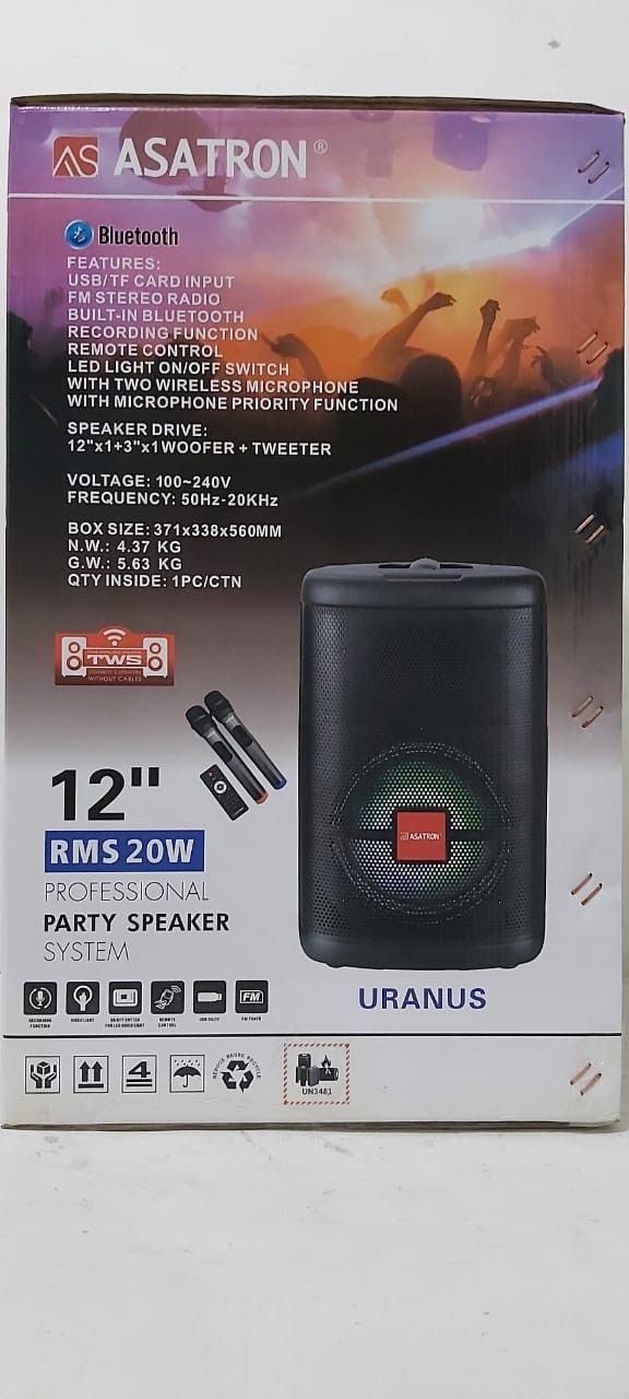 Speaker Portable Asatron URANUS Original 12 Inch Bluetooth 2 Mic Karaoke