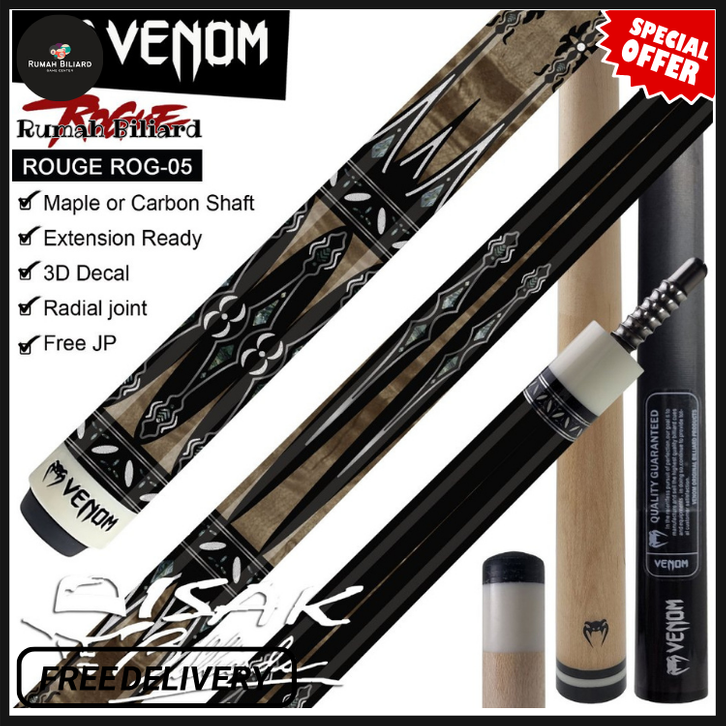 Venom Rogue ROG-05 Pool Cue - Radial Maple Carbon Ext Stick Billiard