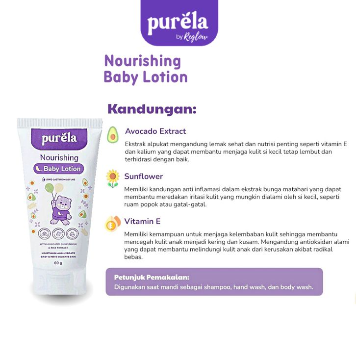 Purela by Reglow Nourishing Baby Lotion Perawatan Kulit Bayi BPOM Menjaga Kelembapan Kulit Serta Mencerahkan Kulit Bayi