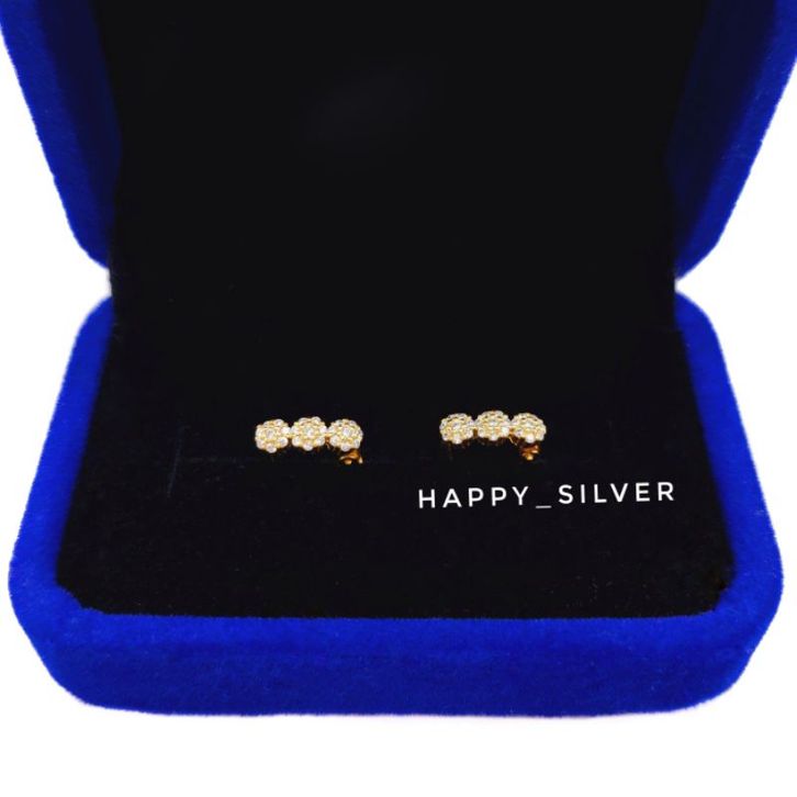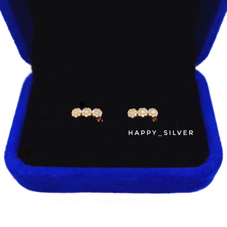 ANTING PERAK ASLI SILVER 925 LAPIS MAS MODEL JEPIT BUNGA 3 SUSUN