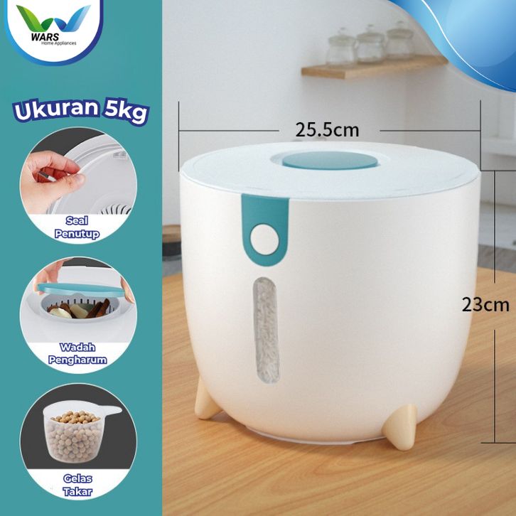 WARS 5 Kg & 10 Kg Dispenser Beras Modern Kedap Udara Anti Kutu Wadah Tempat Kacang Tepung