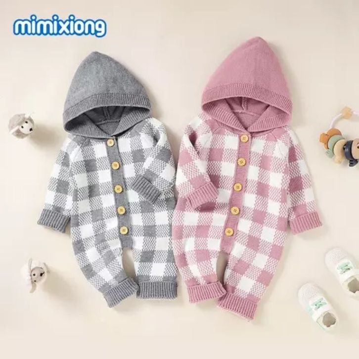 Jumper bayi Newborn motif kotak kotak 0-9 bulan jumper bayi Newborn perempuan dan laki laki bodysuit jumps